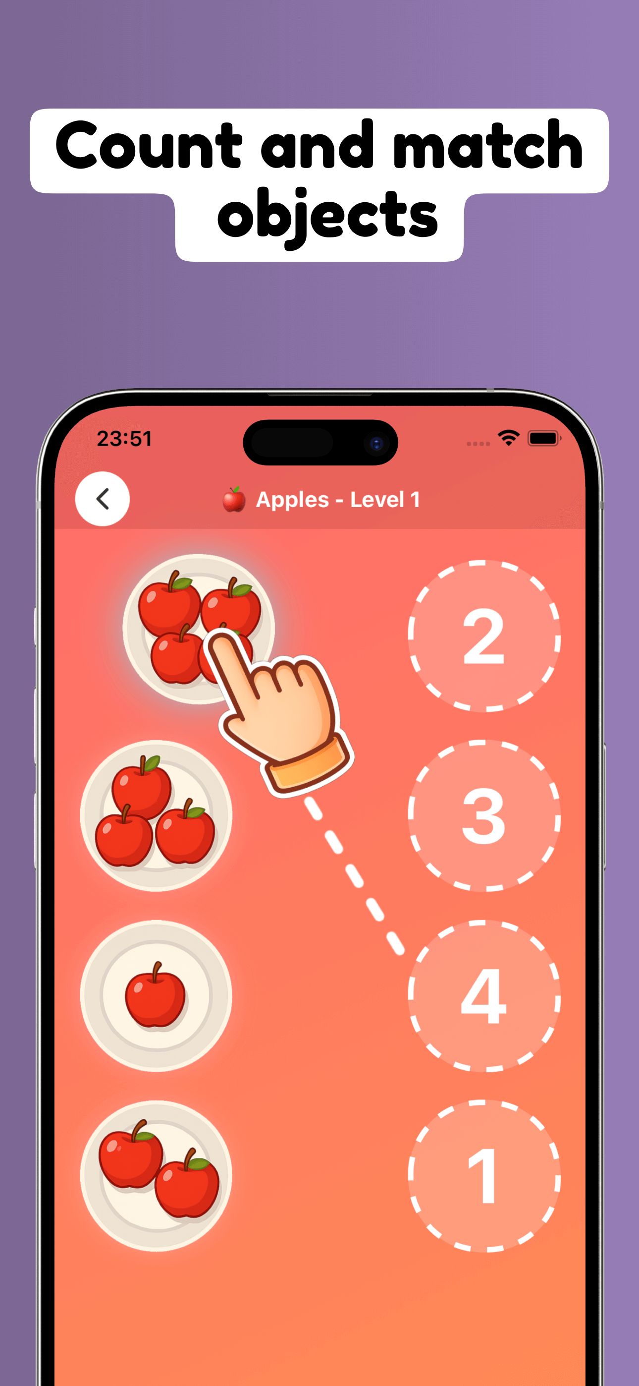 - Apple counting: Match quantities with numbers